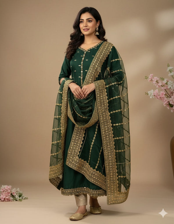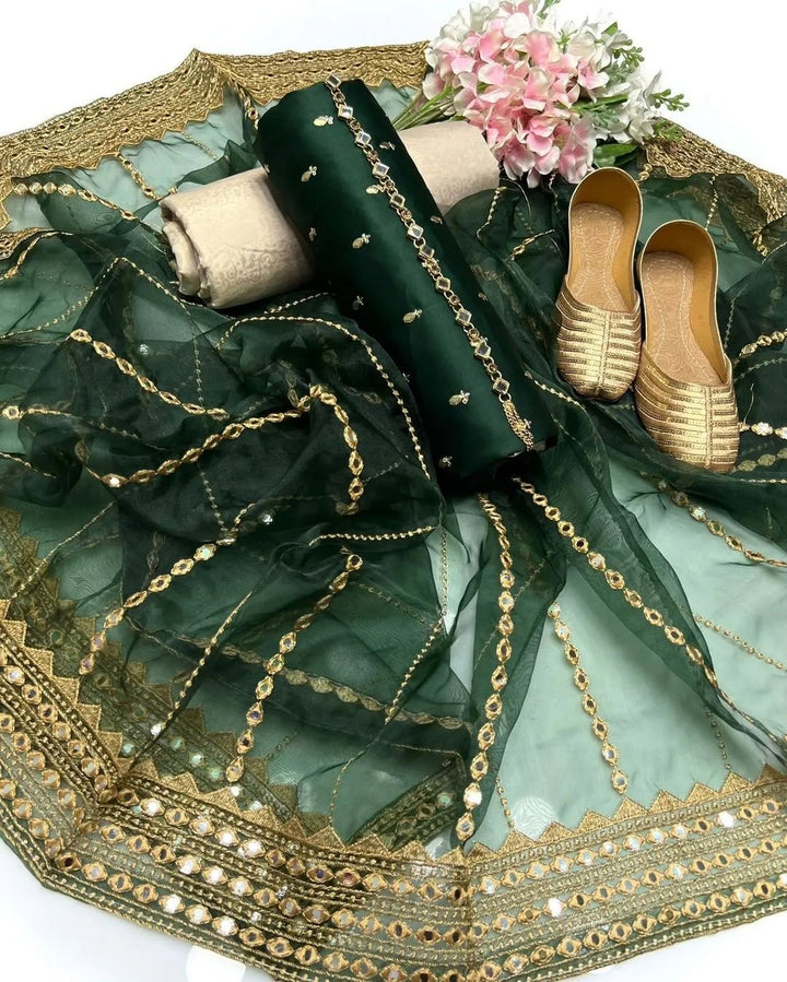 Organza 9mm Panni Mirror Embroidered Dupatta