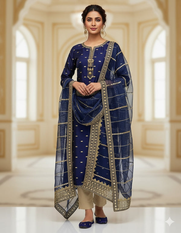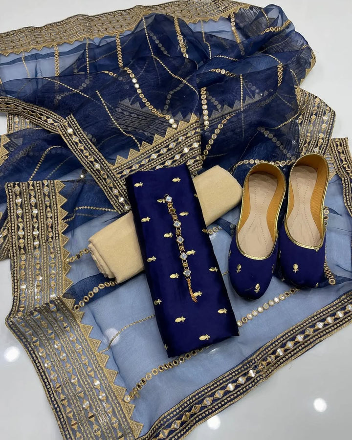 4Pc 9mm Mirror Full Heavy Embroidered Gift Pack with Shoes Free D-Nevy Blue
