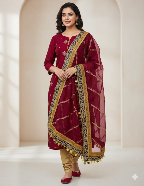 (DUPATTA):-Organza Heavy Zarii Tilla Embroidered 4 side Borders