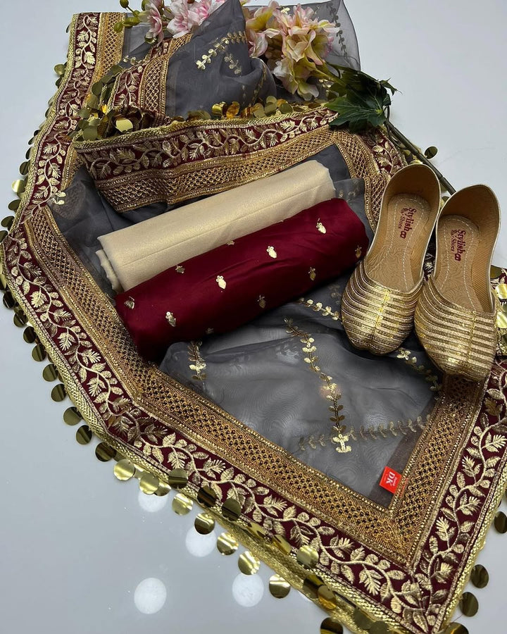 (DUPATTA):-Organza Heavy Zarii Tilla Embroidered 4 side Borders