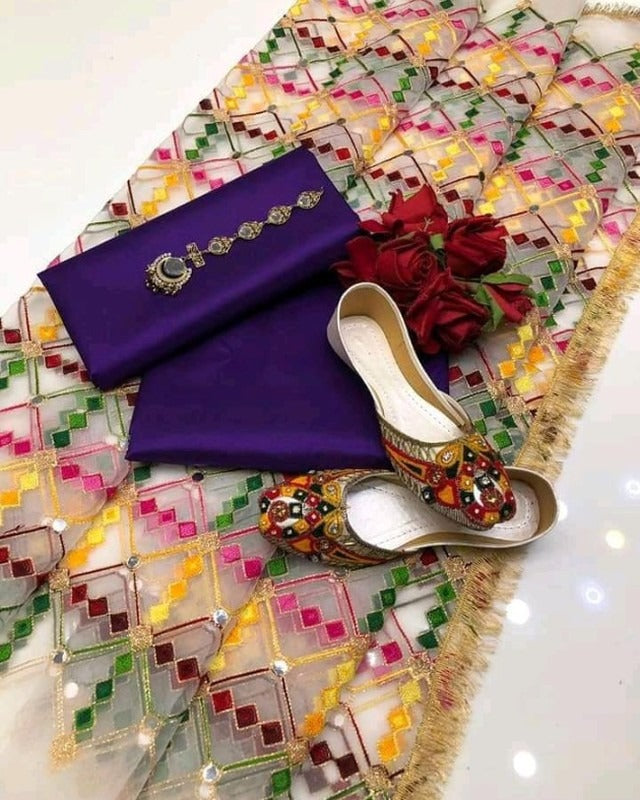 Dupatta:- Organza Multi Heavy Embroidered with Plastic Mirror Work.