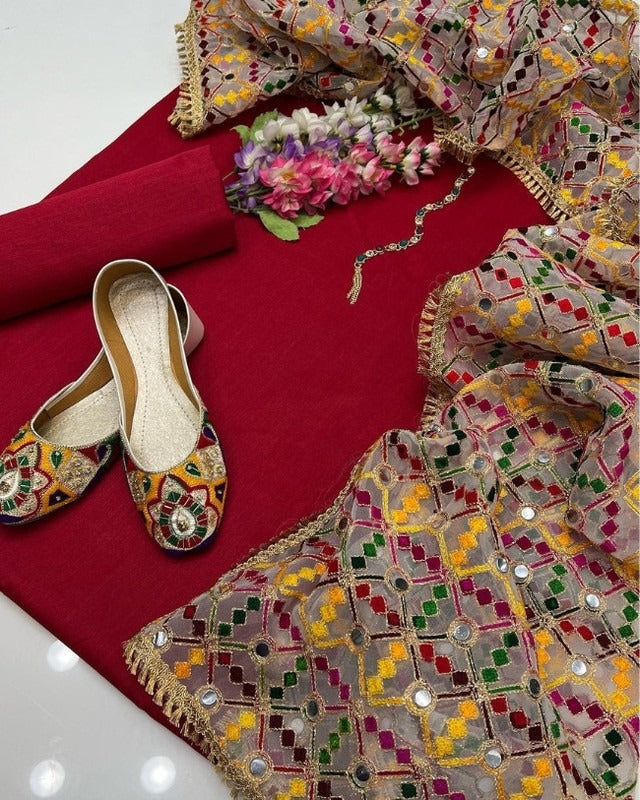Dupatta:- Organza Multi Heavy Embroidered with Plastic Mirror Work.