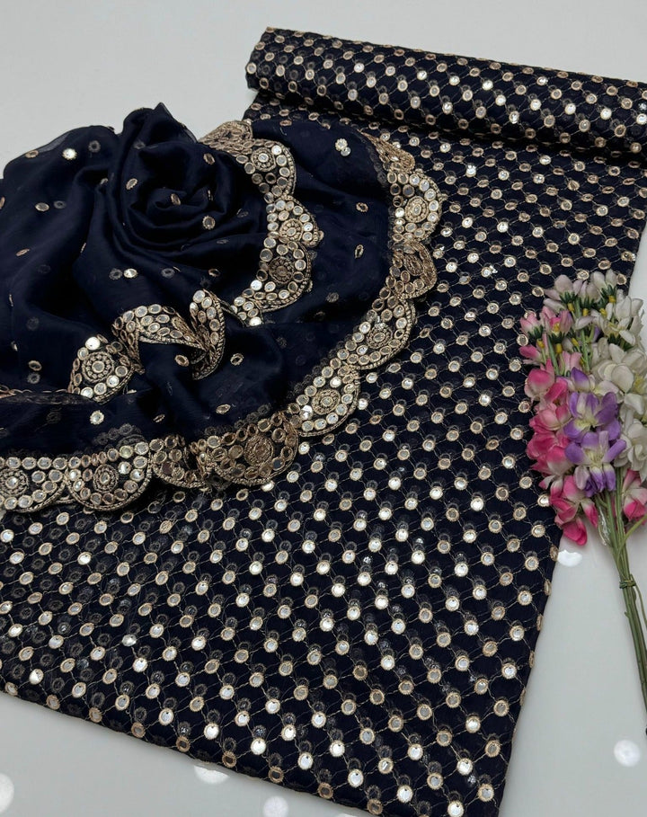 Front :- 9mm Pani Golden Mirror Sequnce Work Embroidery