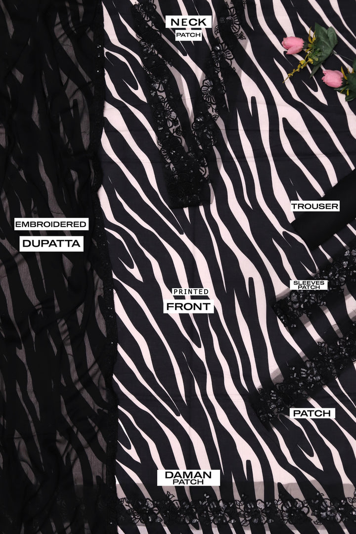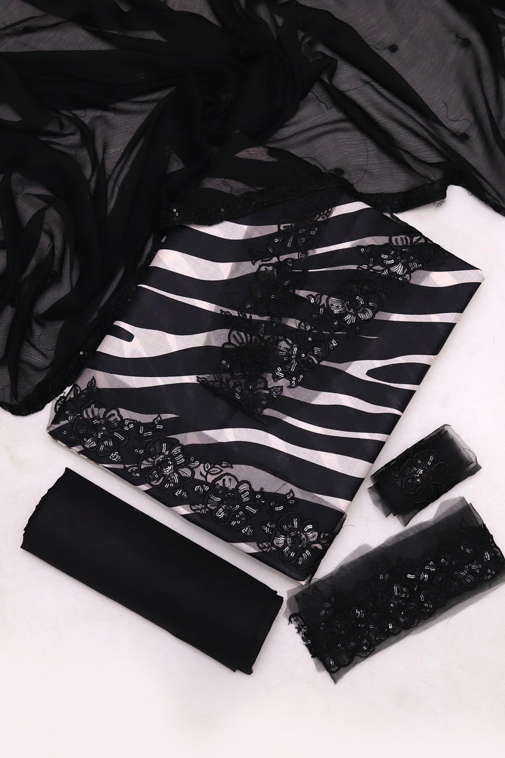 Pure Bimber Chiffon Emb dupata 4 side lass pati attached ready to wear